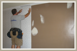 As you see in my photos below, if I am hanging wallpaper over paint, all my jobs will be patched if needed. Wall sizing will be applied to all of my jobs. I use clear strippable paste even if the wall covering is pre-pasted. I will also wallpaper your light switch covers, outlet covers, and vent covers if you desire.